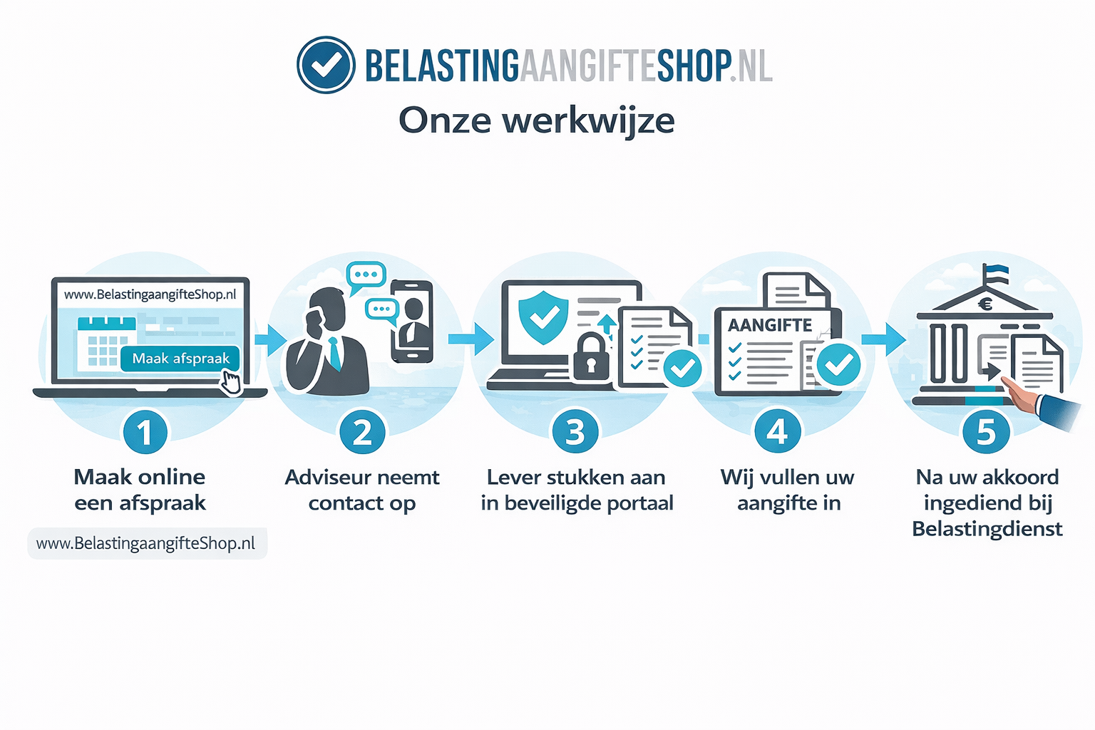 - Wij nemen alle communicatie met de belastingdienst van u over